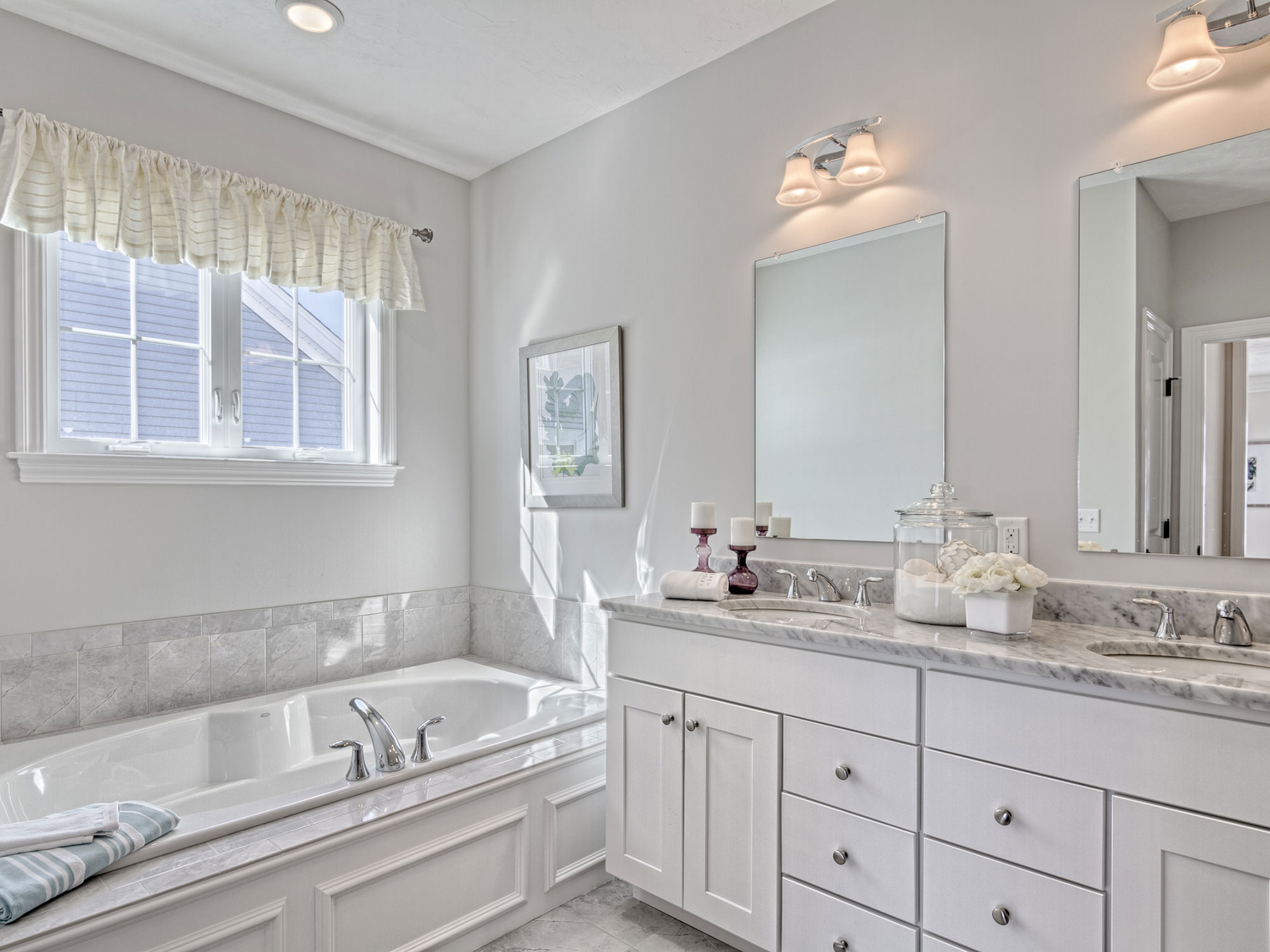 - Great lighting is key! Sconces, recessed lighting, and chandeliers can all work for a master bathroom. Whether you you prefer more modern, streamlined fixtures or a more rustic, reclaimed feel, there are plenty of great options.